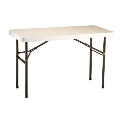 Το επαγγελματικό τραπέζι 122 εκ. x 60 εκ. της Lifetime είναι η εύκολη λύση για κάθε χώρο. Εύκολο στο στήσιμο, στο μάζεμα, και στην αποθήκευση. Στην Lifetime, τα επαγγελματικά πτυσσόμενά μας τραπέζια κατασκευάζονται από πολυαιθυλένιο υψηλής αντοχής και είναι ανθεκτικά στο νερο, δεν σκάει αλλά ούτε και ξεφλουδίζει. Οι ενσωματωμένες κυψέλες κάτω από το τραπέζι προσφέρουν πρόσθετη ακαμψία και ισχύ. Επίσης, η μεταλλική βάση περασμένη από ηλεκτροστατική βαφή, προσφέρει προστασία από τις καιρικές συνθήκες. Τα τραπέζια της Lifetime περιέχουν μαλακές καμπυλωτές άκρες, ώστε να μην ταλαιπωρούνται τα χέρια σας κατά τη μεταφορά τους. Η λεία επιφάνειά του επιτρέπει να γράφετε άνετα. Οι ειδικοί σχεδιαμένοι κρίκοι ασφαλείας εμποδίζουν το πόδια του τραπεζιού να κλείσουν ακόμα και εάν δεν έχουν ανοιχτεί πλήρως.